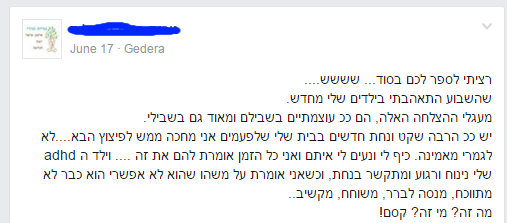 - "הילד לא מסוגל לשבת 10 דקות בכיתה ואני לא יודעת מה לעשות"